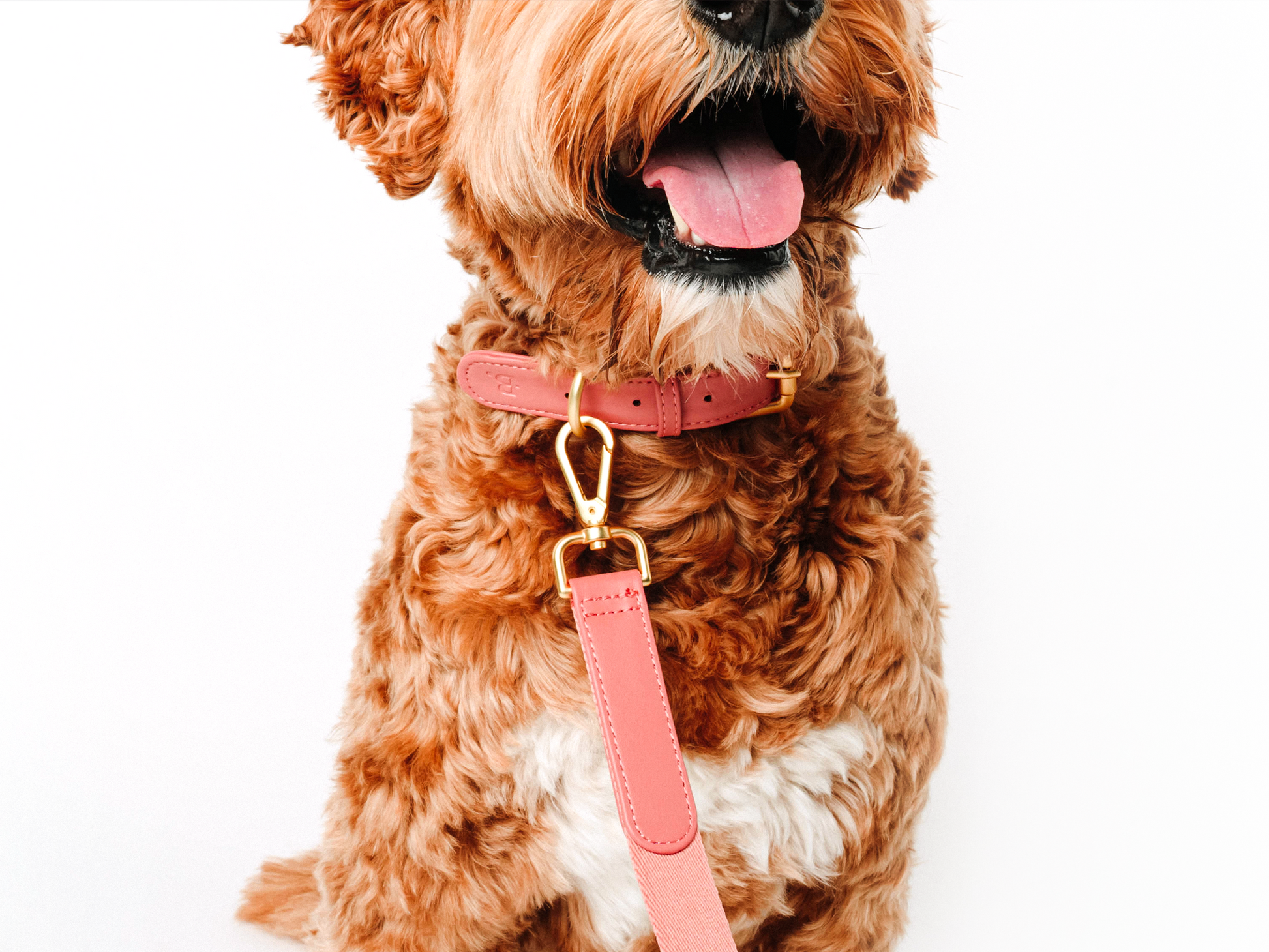 Looking for a fun, fashionable, and sustainable dog leash? Look no further than our Pink Dog Leash! This leash is made of recycled plastic bottles and vegan leather, so you can feel good about using it without sacrificing style. It's also available in three different sizes to fit any dog, and the light hardware ensures a comfortable walk for both of you. Plus, the pink color is perfect for adding a touch of playfulness to your look.